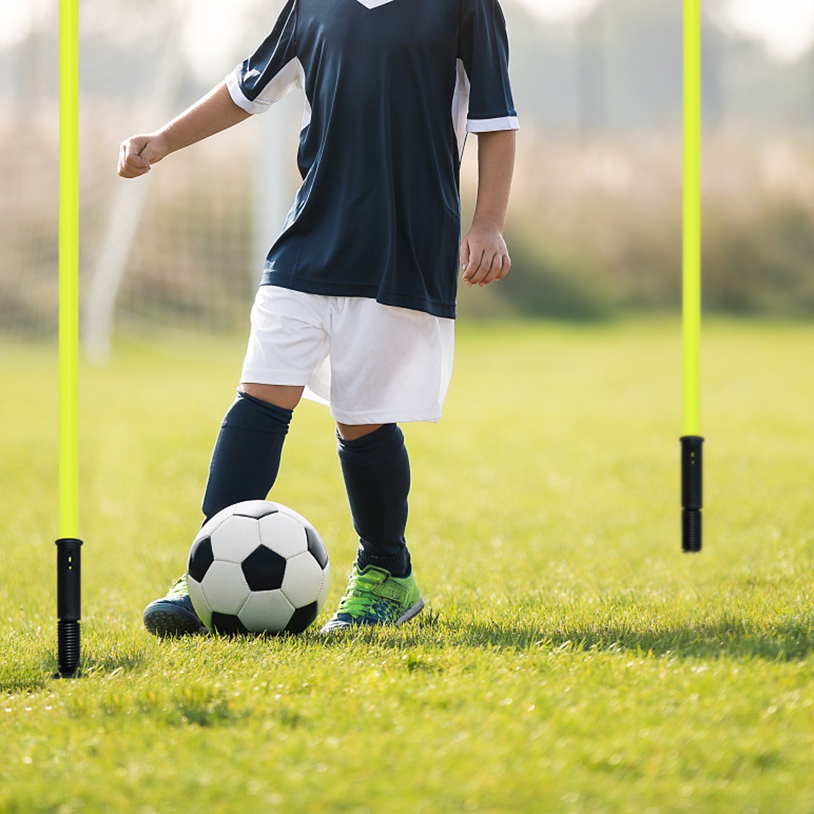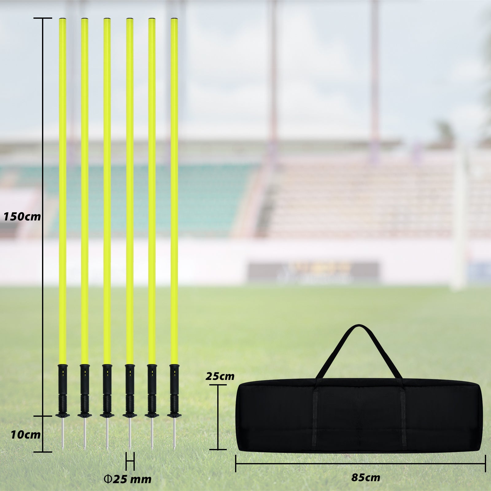 Dankzij de stevige pinnen blijven de palen stabiel staan op gras, kunstgras en andere zachte ondergronden. Ideaal voor trainingen op verschillende locaties.